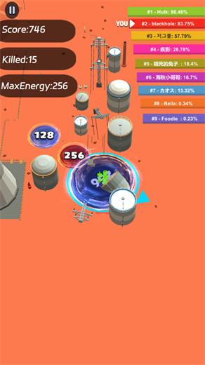 2、你需要控制黑洞通过吞噬城市建筑来不断地变大,让自己的黑洞规模成为游戏中最大的那一个。