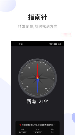 海拔app是一款非常实用的指南针软件,用户可以使用这款软件来查看方向和实时的海拔高度,而且还能充当手机计算器使用,无论是看风水还是出行旅行都是必备的实用工具,而且软件的界面设计非常简洁,大家使用起来非常的流畅,没有任何的广告遮挡和弹窗,占用的手机内存也非常少,而且使用不需要消耗流量,有需要的小伙伴快来下载海拔app使用吧。