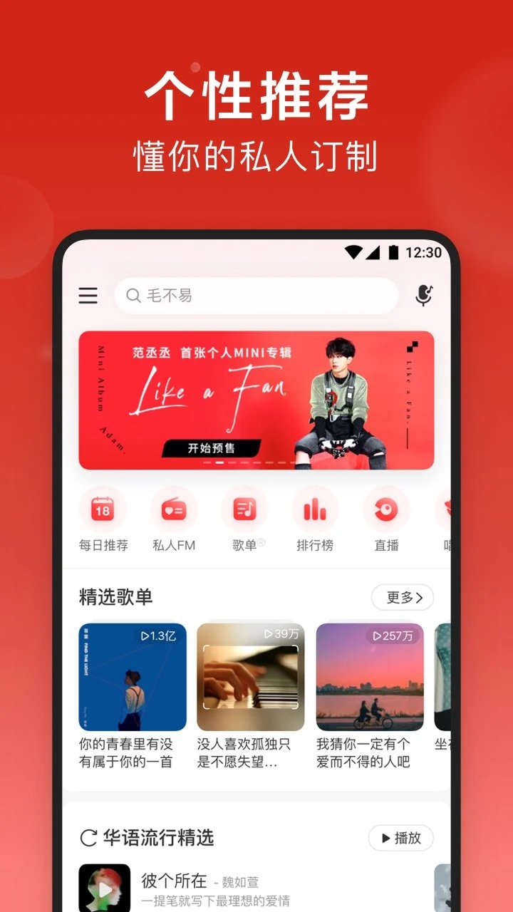 超准智能算法比你更懂你,根据你的日常听歌喜好,将自动推荐给你感兴趣的歌曲。