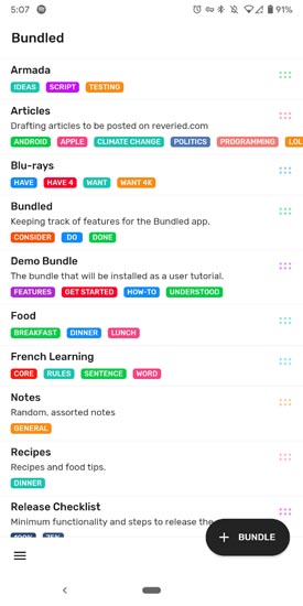Bundled安卓版是一款新出的记笔记软件,目前在Google play商店上可以找到这款软件,还是测试的版本。虽然还为正式发行,但是这款Bundled安卓版还是很值得大家下载尝试的。首先Bundled安卓版的外观设计上就很简洁,非常符合记笔记的样子,功能强大,多种标记、标签应有尽有。其次,还可以书写Markdown的代码,各种搭配的高亮关键字也挺好用的。最后,有需的小伙伴可以下载体验哦。