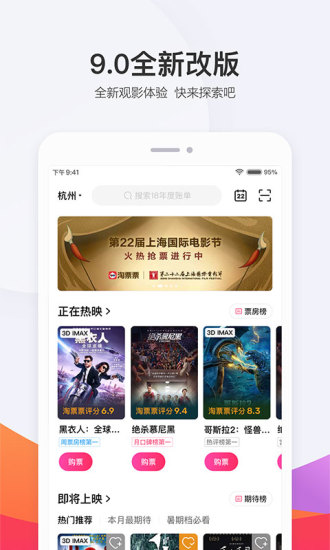 手机买电影票就用淘票票app,不仅可以查看当前热映的电影还能领券购买电影票,享受更多的福利。在淘票票app上可以实时看到当前电影的票房数,可以在线选座、在线预约购票,让你看电影更加省心。作为主流的购买电影票的软件,淘票票app拥有使用方便,购票享福利等多种便民功能。想看电影的小伙伴,推荐下载淘票票app,随时都可以看电影哦。