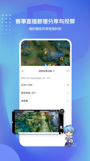 3、赛事直播新增分享与投屏,随时随地共享电竞时刻!
