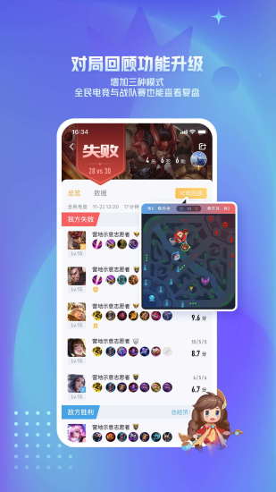 1、对局回顾功能升级:增加三种模式,全民电竞与战队赛也能查看复盘
