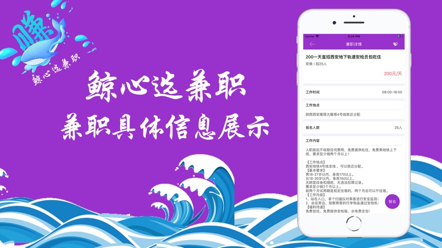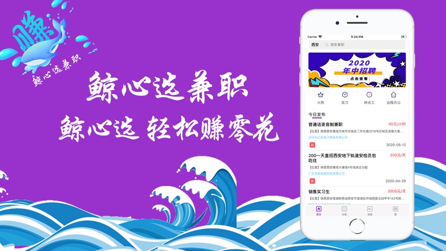 鲸心选兼职app是一款安全靠谱的兼职软件,平台给用户精心挑选了很多靠谱的兼职工作,各种岗位的都有,最重要是工资有保障,在这个平台上可以方便的找到你感兴趣的兼职,不需要收费,你可以试试。