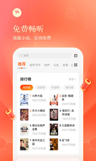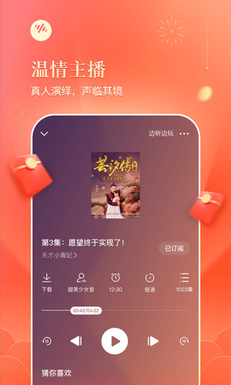 番茄畅听app赚钱版有着海量正版小说,全部支持听书,放松你的双手双眼就能听书,还有热门好文推荐,一起来追听吧,让温柔主播来陪伴你,真人演绎,让你听的仿佛身在其中。用户可以下载此本书,调换声音,设置听书时长到达时间后自动关闭,也可以改变听书的倍速,显示此本图书的章节,方便用户操作,放松用户的双手双眼,用户随时随地都可以听书,充分利用碎片化时间来听书。番茄畅听app赚钱版里的图书类型有都市爽文,霸道总裁,悬疑惊悚,言情穿越,玄幻修仙,武侠江湖浪迹天涯,古代历史等等类型应有尽有,不管你想看什么类型这里都可以看到,满足你的听书欲望,不存在书荒,只要是新人就有大红包,每天还能通过停宿赚钱,签到,开宝箱等等都可以赚钱哦,红包福利超级多,支持提现,让你听听书就能赚到钱,每天还有精品好书推荐,根据你的阅读爱好来进行精准推荐,总有一本打动你的心。
