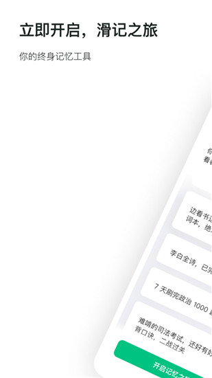 滑记最新版是一款非常优质的手机单词记忆软件,这款软件界面简洁,采用了卡片式记忆的方式,结合记忆曲线,采用智能ai算法为用户提供了优质的记忆服务。滑记最新版可以根据用户的学习情况动态生成学习以及复习的资料,用户可以随时随地打开软件来进行记忆,采用了碎片化的速记卡让要还可以高效学习。滑记最新版拥有非常丰富的学习资料等你来获取,还提供了富文本编辑器,用户可以自由的进行记忆卡片的编辑,同时还有学习统计等你来了解,让用户可以更好的查看自己的学习情况,喜欢的话千万不要错过,感兴趣的用户快来下载吧。