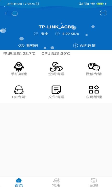 1、一键清理,可以对手机垃圾进行快捷清理的操作,功能极简。