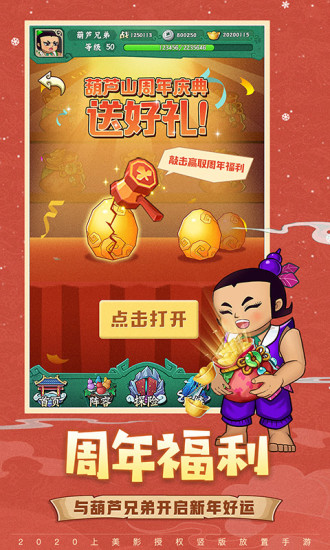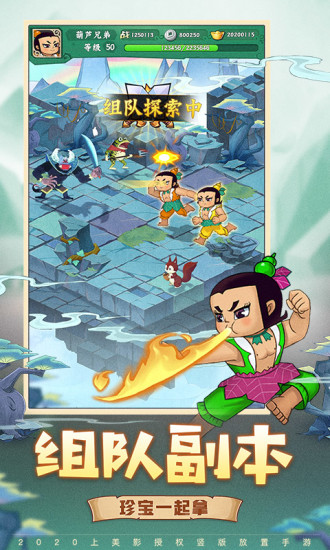葫芦兄弟周年破解版这是一款得到了上海美术电影制片厂正版授权的以86年动漫剪纸风格制作出来的葫芦娃题材的手游大作,在这里面玩家们需要一路打妖升级保护穿山甲救出爷爷,游戏中采用了星级通关特点,玩家们不仅要成功闯关而且还要以三星的方式过关,这样才能领取到最后的关卡宝箱奖励。游戏中有着丰富的游戏玩法特点,人物多样化葫芦七兄弟随意变化使用,一同与葫芦七兄弟进去妖巢去大闹一场解救爷爷吧。在葫芦兄弟周年破解版中上线就能领取到海量的福利,各种极品装备免费赠送,还有隔壁人气人物哪吒前来助阵,强势联动哪吒大闹葫芦山!更有家族竞技、异世界探险、组队副本等多个好玩有趣的活动等着玩家们前来尝试。