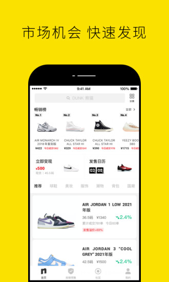 Nice app这是一款有着超多球鞋资源的潮品转卖的平台。在这里有着好多适合年轻人所喜欢的球鞋、潮牌、美妆等物品,你只要有想买的潮流商品,在这里不说百分百有,十有八九还是有的。如果你对这里所出售的商品有着质量上面的不安的话,那就放下你那不安的心吧,在这里有超级专业的鉴定机构,联合get、维鉴等超级专业的鉴定平台对所有的商品都会逐一进行鉴别,保证到消费者手中的单品全都是正品而且质量有合格的,如果有特殊的原因,也会支付给用户违约金作赔偿,所以你可以放心的在这里购物。除此之外在这里你还可以看到行情的功能,它可以查看每个单品在每个时间段的真实价格,还可以看近七天的涨幅价格,让你在购买时能够做好有效的参考。Nice app还有独特的担保预售功能让你轻松赚取差价,还能进行出价买,用更低的价格买到心仪的商品。除此之外还有各种用户大咖在这里分享他们的球鞋潮品,根据他们分享的实体图来考虑要不要购买。喜欢这款软件的小伙伴们快点击下载吧。