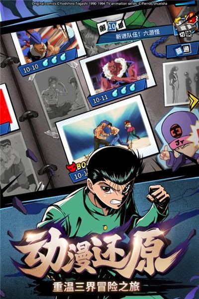 幽游白书武术会安卓版是一款日韩动漫风Q版动作卡牌类型手游。幽游白书武术会安卓版采用全新引擎打磨制作,画面精美细腻,角色个性鲜明栩栩如生,技能特效华丽酷炫打击感超强并且操作简单容易上手!受广大玩家小伙伴们的喜爱。玩家在游戏中扮演新一任的灵界侦探,一边寻找着回忆,一边代替幻海管理道场。不仅如此,玩家还需要召集伙伴进行特训、最后在暗黑武术会的赛场与强大的对手一决胜负!不同的角色有着不同的定位与技能,搭配组合不同的阵容更能产生意想不到的战斗力!游戏还原了动漫中的经典剧情场景,赋予了人物独特的属性,技能,多种阵容组合搭配玩法,灵活手操,享受最刺激的冒险体验。感兴趣的小伙伴不妨下载上线体验看看吧。