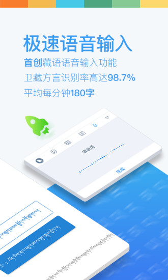 1、极速语音输入功能:东噶藏文输入法手机版拥有语音输入功能,识别率高,识别速度快,打字更加快速;