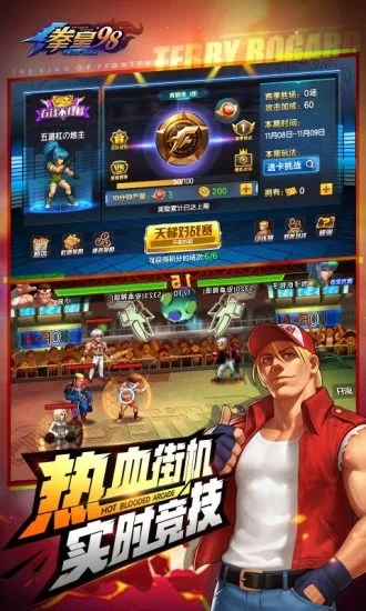 拳皇98手机版是一款以格斗为主的动作手游,相信很多用户都对拳皇非常熟悉了,在游戏厅我们经常会看到有人玩拳皇游戏,然而这款手游就是由街机演变而来的,如果想玩又不想去游戏厅怎么办呢?不如试试这款拳皇98一定让你梦回街机,这样就再也不需要累死累活的跑去游戏厅玩游戏了,这款拳皇98就是以拳皇为原型打造的格斗手游,在这里你将化身成为拳皇角色进行格斗,在拳皇世界中,我们熟知的人物有草雉京,八神庵,他们每一个人都有自己的特点,拳皇98带你回顾拳皇世界,高清画面,终极格斗等你来战,加入拳皇98,开启你的格斗生涯吧!