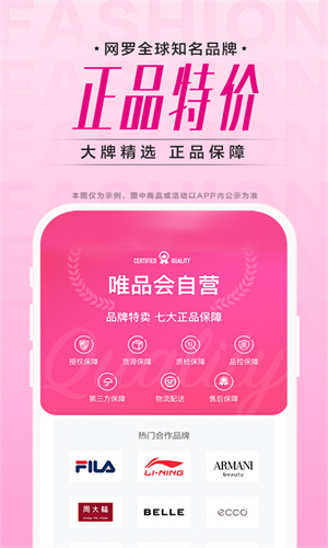 累积一万多个合作品牌,1600多个独家合作品牌,低至1折的超低折扣,3~5天的限时特卖,让精明的时尚达人轻松享受品质生活。