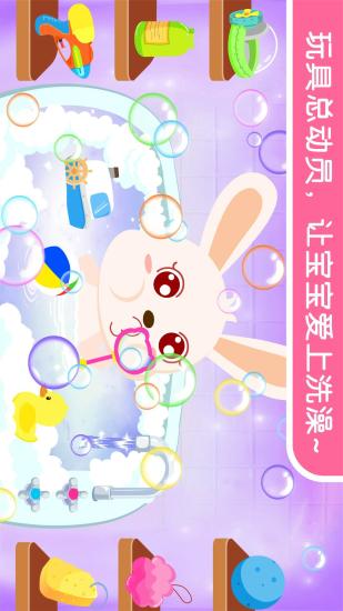 全新动画片登场啦!一起到故事里学习知识吧!想让宝宝洗澡变得乐趣无穷,并养成勤洗澡、讲卫生的好习惯吗?让宝宝爱上洗澡澡吧~没有污渍,细菌全跑,宝宝健康,妈妈没烦恼!模拟真实的洗澡场景,内含多种互动,让宝宝在帮助小动物洗澡的过程中,切实感受到洗澡的趣味并爱上洗澡澡,小宝贝们快来帮奇奇和兔洗洗澡吧,先帮奇奇把水温调好,不能太烫也不能太冷哟!再用海绵和浴花擦去奇奇身上的污渍。搓搓背,刷刷脚,揉揉肚子,小小身体洗得真干净呢!浴缸里总是会有了好多好多的泡泡,浴盆里还有各种好玩的玩具呢!新奇的魔幻球,让浴盆如梦幻一般~小宝宝们还可以边洗澡边学会唱洗澡歌呢,儿歌+游戏,全方位培养宝宝勤洗澡、讲卫生的好习惯~~