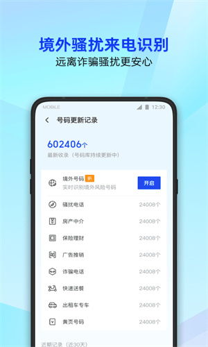 5、 骚扰拦截:基于业界领先的云端智能拦截系统,轻松拦截垃圾信息,屏蔽骚扰电话;