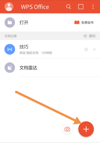 2、【WPS Office】app打开后,点击底部【+】。如图所示: