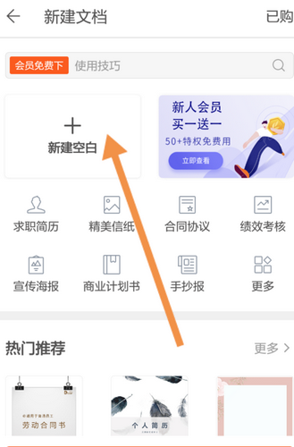4、进入选取模板页面,点击【新建空白】进入编辑页面。如图所示: