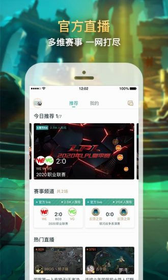 丰富的游戏视频:娱乐搞笑、大神赛事、全明星、小苍、小智···各种视频,应有尽有,还能观看LPL各种比赛直播;