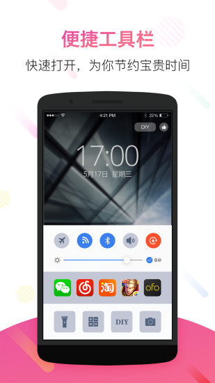 是专门为苹果手机用户开发的一款简约又独具个性的手机锁屏主题应用软件。在软件中不仅为用户提供了无比丰富的锁屏桌面图纸素材,而且还为用户提供了个性话编辑的功能。用户可以选择好站内的素材后,把它设置为九宫格样式、心形样式、方形样式,拥有更加灵活的操作空间。不但如此,平台还为用户提供了一键定制专属锁屏的功能。如果不喜欢图片锁屏的用户,还可以在这里设置文字锁屏。文字滑动锁屏等等。欢迎喜欢的朋友快来一起下载使用吧。