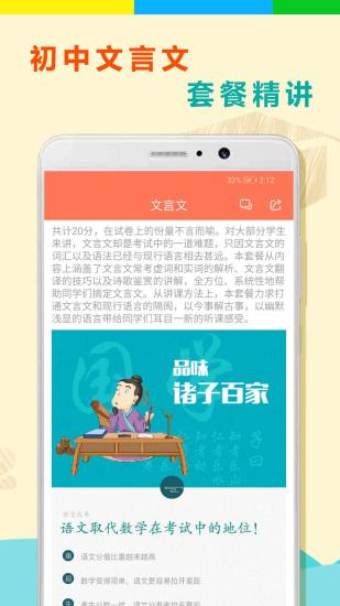 初中语文全套精讲最新版是一款超多用户们喜欢的手机软件,是一款超多用户们强烈推荐的手机软件。在这里,用户们可以看到超多的精彩内容,超多的精彩玩法等着用户们前来体验。在这里,用户们可以看到超多的语文作文的精品套餐,超多的精选作文,让用户们看到超多的优质作文。在这里,用户们可以看到超多初中文言文的精讲,超多的文言文精讲让用户们一下子就读懂文言文,让用户更加打明白文章的内容跟意识。在这里,用户们还可以体验到超有趣的动画演绎,超多的名师在这里为用户们讲解,让用户们享受到超舒适的使用体验。在这里,用户们还可以看到进度,高效 的管理自己。这么一款超使用的手机软件,感兴趣的小伙伴们千万不要错过哦,快来下载体验吧!