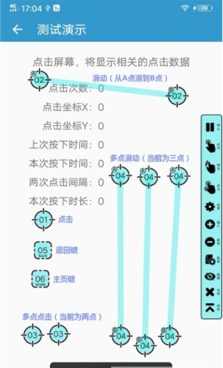 支持功能:点击、疯狂点击、滑动、多点同时点击或滑动、定时开始、随机时间、插入或移除指定步骤、保存与加载配置等等,后续版本会陆续完善与添加功能