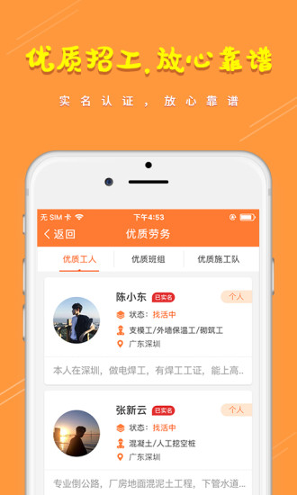 1、职业认证,免费查看招工,优先展示优质劳务身份。