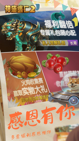 一路相伴,感恩有你!全球亿万人都在玩的经典跑酷游戏《神庙逃亡2》邀您一起参加感恩回馈季!