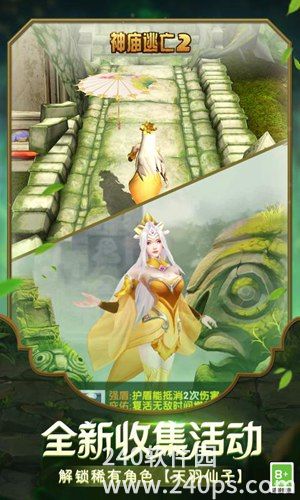 神庙逃亡2手游最新版下载是由Imagngi Studio推出的一款角色扮演跑酷手游,在神庙逃亡2手游最新版下载中玩家将会来到一片充满了各种障碍陷阱的热带雨林,为了躲避恶魔守卫的追捕而不断奔跑,非常有趣。在游戏中玩家可以选择自己所要游玩的角色,每个角色都有自己的独特技能和外观,能在游玩的过程中给你带来许多不同的加成效果或者是特殊效果等,帮助你获得更高的得分或者是更长的距离。游戏中加入了许多全新的玩法系统,比如滑索、轨道、悬崖、陷阱等等,让你在游玩的过程中可以有更多不同的体验。随着游戏版本的不断更新,越来越多的新角色和兴玩法也加入到了游戏中,如果你也想体验一番的话,不妨下载下来试一试吧!