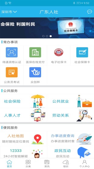 广东人社app下载最新版是一款由广东省劳动保障信息中心推出的手机关于社保内容的软件,在里面有着非常多的功能内容可以让你来体验,你就不需要再天天跑去劳动局里进行咨询了,许多内容你都是可以直接在手机上进行操作的,非常的方便。在广东人社app下载最新版上,这里面你可以绑定你的社保卡,就可以查询到相关的社保内容了,还可以进行深秋失业金的补助,进行公务员的考试报名,个人的信息查询等等,十分的多,每一笔的参保缴费情况,你都是可以在这里查询到的,还可以进行一键打印,非常的不错,快来广东人社app下载最新版体验吧。