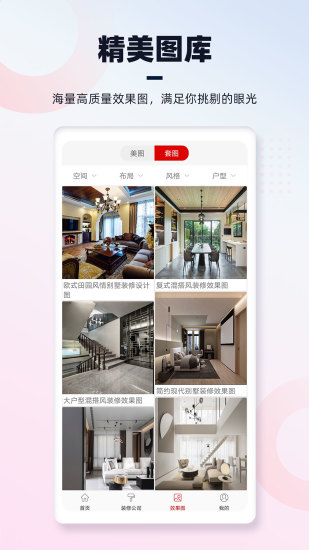 齐家装修app官方版是为业主提供一站式装修服务的平台APP,这款软件由齐家官方出品,为用户提供了非常优质的装修服务,看设计案例,算装修报价,学装修攻略,看业主社区,选口碑装修,享齐家保,获得更好的装修体验。齐家装修app官方版拥有超多优质装修顾为您服务,提供了免费上门量房,轻松获取装修方案,快速了解预算价格,可以自由挑选,还可以根据喜好来进行修改,超多真实装修案例带给用户更多灵感。齐家装修app官方版精选了优质的装修公司为您服务,品质建材,还可以现场监工,帮验收等,喜欢的话千万不要错过,感兴趣的用户快来下载体验。