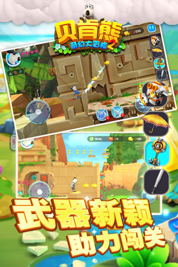 贝肯熊奇幻大冒险2破解版这是一款有趣的根据动漫改编而来的手机游戏,这是一款小朋友们都喜欢看的动画片,在这款游戏中有着跑酷的玩法,玩家们需要通过不断闯关的方式来获得武器装备和金币,游戏里面也有很多有意思的玩法。并且这款游戏是完美的继承了第一代版本中的各种好评功能,在此基础上新增了多名角色和多把武器还全新的游戏关卡。在贝肯熊奇幻大冒险2破解版游戏中将免费为玩家们解锁所有全部的人物角色和武器,之后玩家们可以选择自己上手的人物角色和武器进入游戏中开启一场屠杀。这游戏里面有着非常卡通可爱的游戏画面同时配上了活泼的BGM,游戏玩法十分简单,控制人物躲避危险并且尽可能吃金币,然后还需要杀敌。