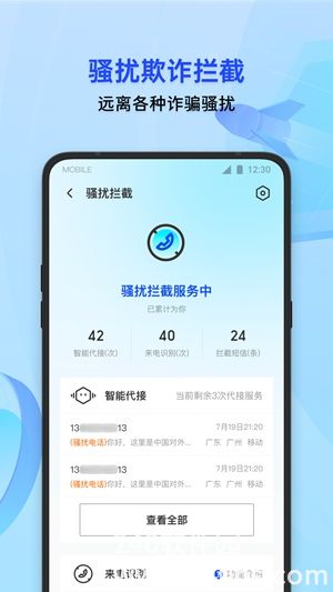 1、【骚扰拦截】智能拦截骚扰电话,过滤诈骗垃圾短信。