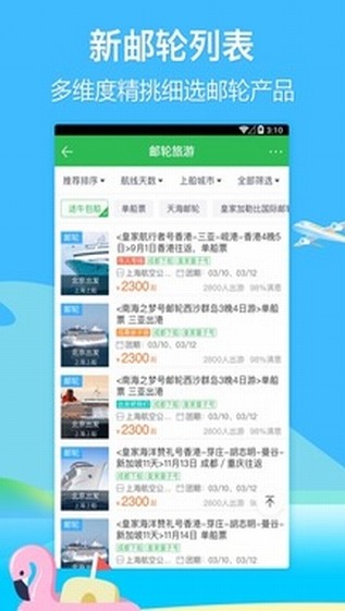 4、邮轮,可以在线预订游轮出国游;