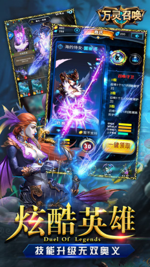 1.炫酷英雄,技能升级无双奥义,还有多元互动,好友切磋卡牌租借。