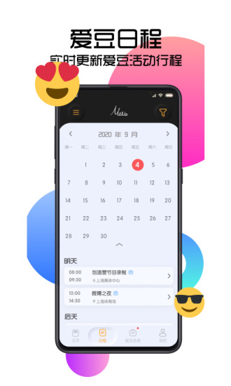 1、【日程】实时更新明星行程,获取爱豆日程安排,查看爱豆活动动态;