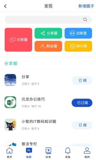 衍书app是一个知识分享的软件,在衍书app上有着很多老师专家在这里分享自己领域内的知识,将所有的大分类打散让老师在自己专精的小类别内进行知识的传播,确保你获得的知识是老师最精通的。你可以在软件上看视频获得你想要学习的知识,也可以通过特定的圈子,在圈子内获得知识,还可以在分类中一层一层往下寻找你想要得到的知识,你在学习的同时,也会完成软件上的任务,多完成任务就可以获得奖励,让你边学习边拿奖励,还不快下载使用吧。