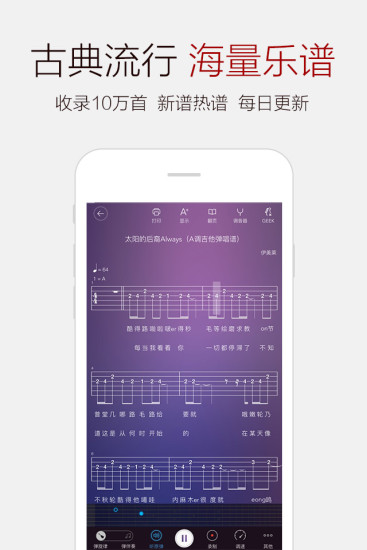 依托弹吧音乐网的乐谱资源优势,打造超过10万首的钢琴谱、吉他谱谱库,你想弹的都在这里哦!