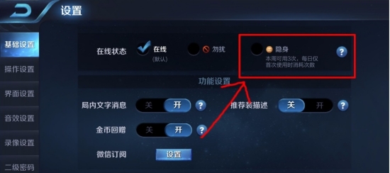 王者荣耀怎么设置隐身状态:王者荣耀设置隐身状态攻略