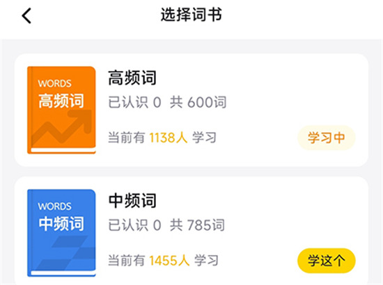 3、选择词书点击学这个,最后点击保存计划即可。