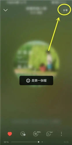1、进入网易云歌曲播放页面,找到右上角“分享”按钮。