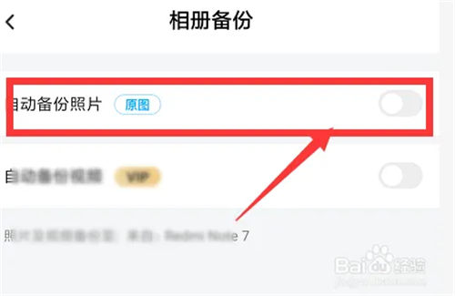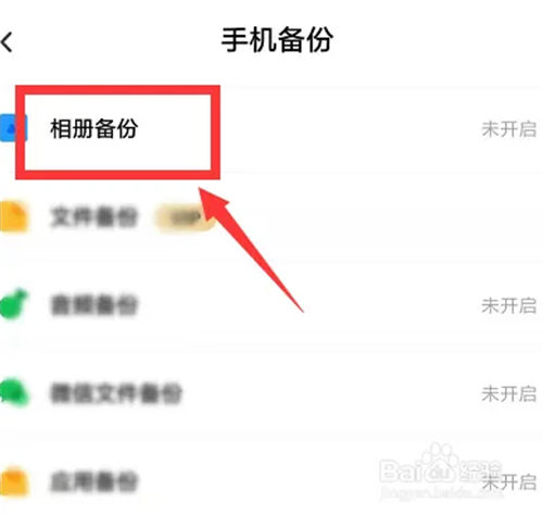 4、打开后,选择第一个设置相册备份选项,如图所示