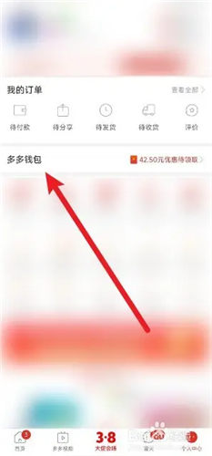 2、进入个人中心页面,点击【多多钱包】