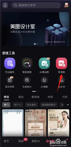 2、选择便捷工具里的“变清晰”按钮,点击进入
