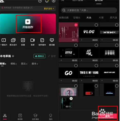 1、打开剪映,点击开始创作,添加素材开始编辑。