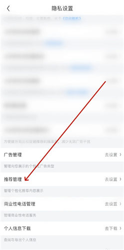 4、打开隐私设置的界面点击“推荐设置”选项,