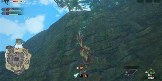 在附近拿一只翔虫,然后依靠三只翔虫的能力爬上悬崖。