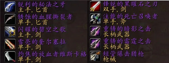 80级奥妮克希亚掉落10把60级经典武器重置升级版,外观和属性沿用60级版本风格,严格意义上来讲它们并不算80级的经典武器,本文也只是简单提一下不计入榜单。
