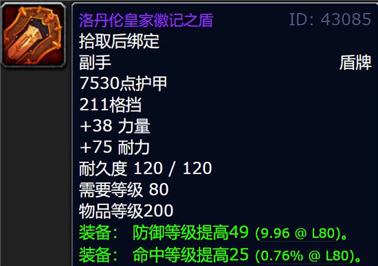 英雄难度净化斯坦索姆玛尔加尼斯掉落。小编在80级5H本的掉落中实在选不出一把有代表性的经典武器,就用盾牌替代吧。洛丹伦皇家徽记之盾是大多数盾坦在80级入手的第一块紫色盾牌,而且在WLK这个装备美工掉线的资料片中,其漂亮的外形得到了很多防战防骑玩家的喜爱。