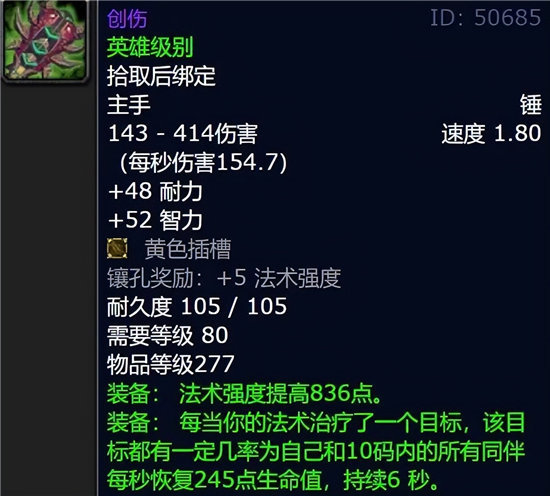 25人普通/英雄冰冠堡垒6号BOSS腐面掉落。对于创伤的特效玩家评价褒贬不一,有人说触发太低不如常驻副属性,也有人说触发逆天胜过橙锤。