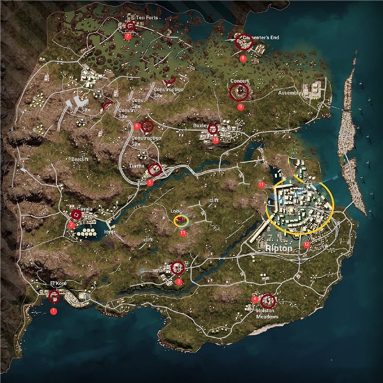 黄色圆圈的城市里全部是室内密室,我做了一个小图标注